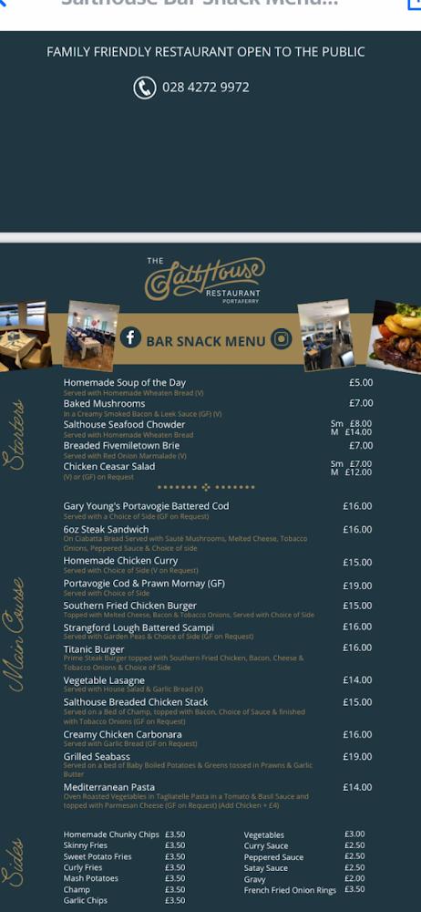 Located in the picturesque coastal town of Portaferry, Salthouse Restaurant stands out as a culinary gem along the shoreline. With easy access from Newtownards, this spot offers stunning views that complement an already delectable dining experience. The surrounding area boasts its own charm, as it is near Ardglass Marina, providing a scenic backdrop for a day out. The restaurant is not just a place for a meal; it's a community gathering spot where locals and tourists alike come to share joy over good food. Salthouse values accessibility, proudly offering wheelchair-friendly seating and facilities. Whether it’s a sunny day or a cozy evening, this establishment sparks a sense of belonging among its patrons. The owners and staff contribute to this charm, ensuring every visit feels special. Customers frequently discuss the friendly and attentive service, which pairs seamlessly with the delicious meals available Tuesday through Sunday. Lastly, Salthouse works diligently to accommodate reservations, so advance booking is recommended, especially during busy hours.